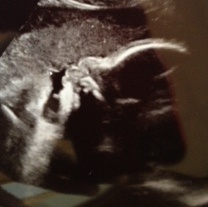 Today I had an ultrasound.  Baby Turner is at 4 pounds.  YEAH BABY!  All looked well.  The only things I noticed was that his head was very close to my pubic bone which means he’s sitting LOW!